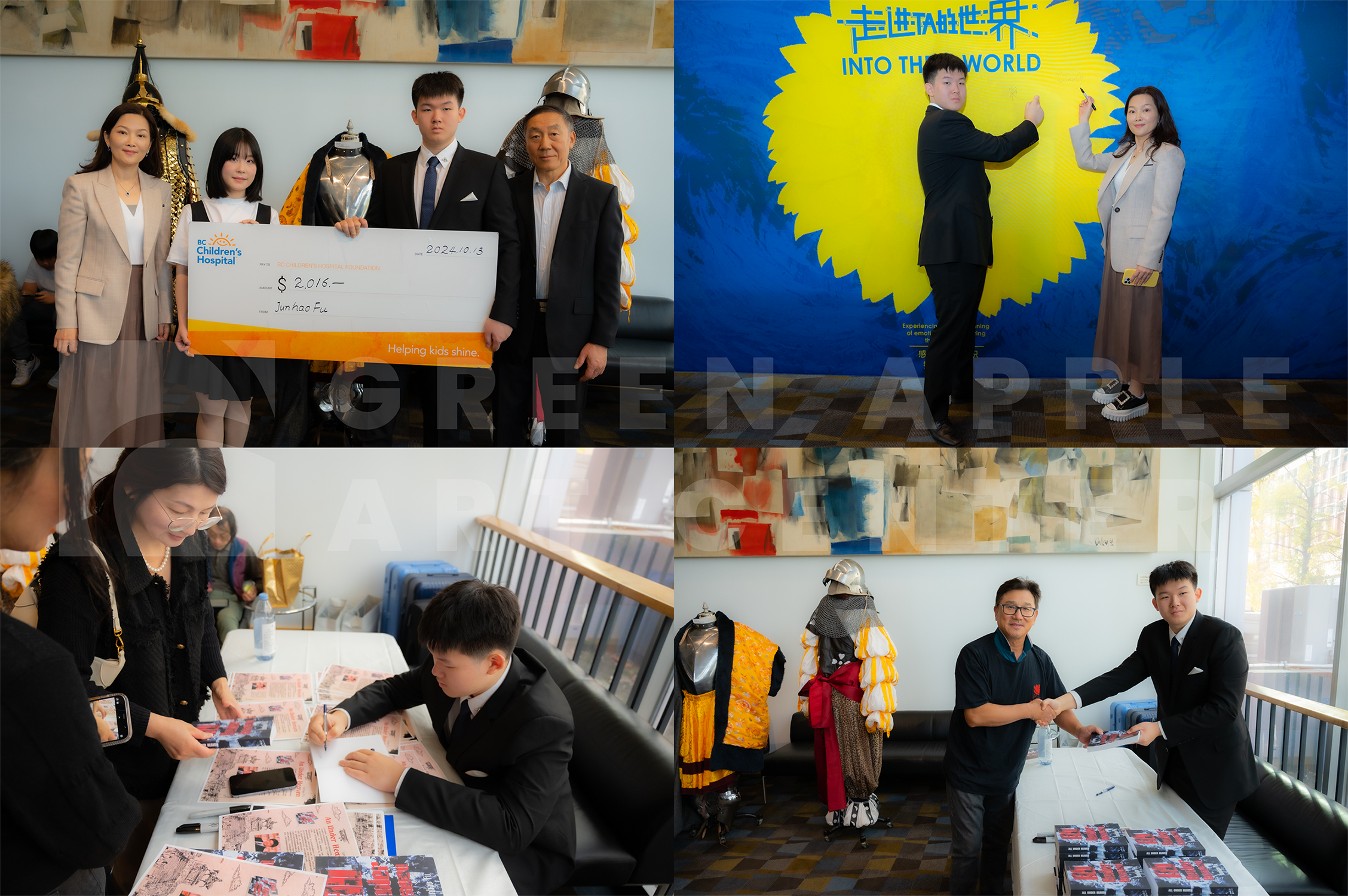 本次展览以跨界为引,以艺术为果,兼具互动性与观赏性,学生们通过将梵高的经典作品与不同领域的创意相结合,创作出一系列独具匠心的跨界艺术作品。周边的衍生产品,也通过义卖的形式进行筹款,联合Peter同学的新书签售,最后隔天通过计算,筹得累计超过2500加币的金额,全数捐与BC children’s hospital,给予更多的孩子接触艺术的机会。