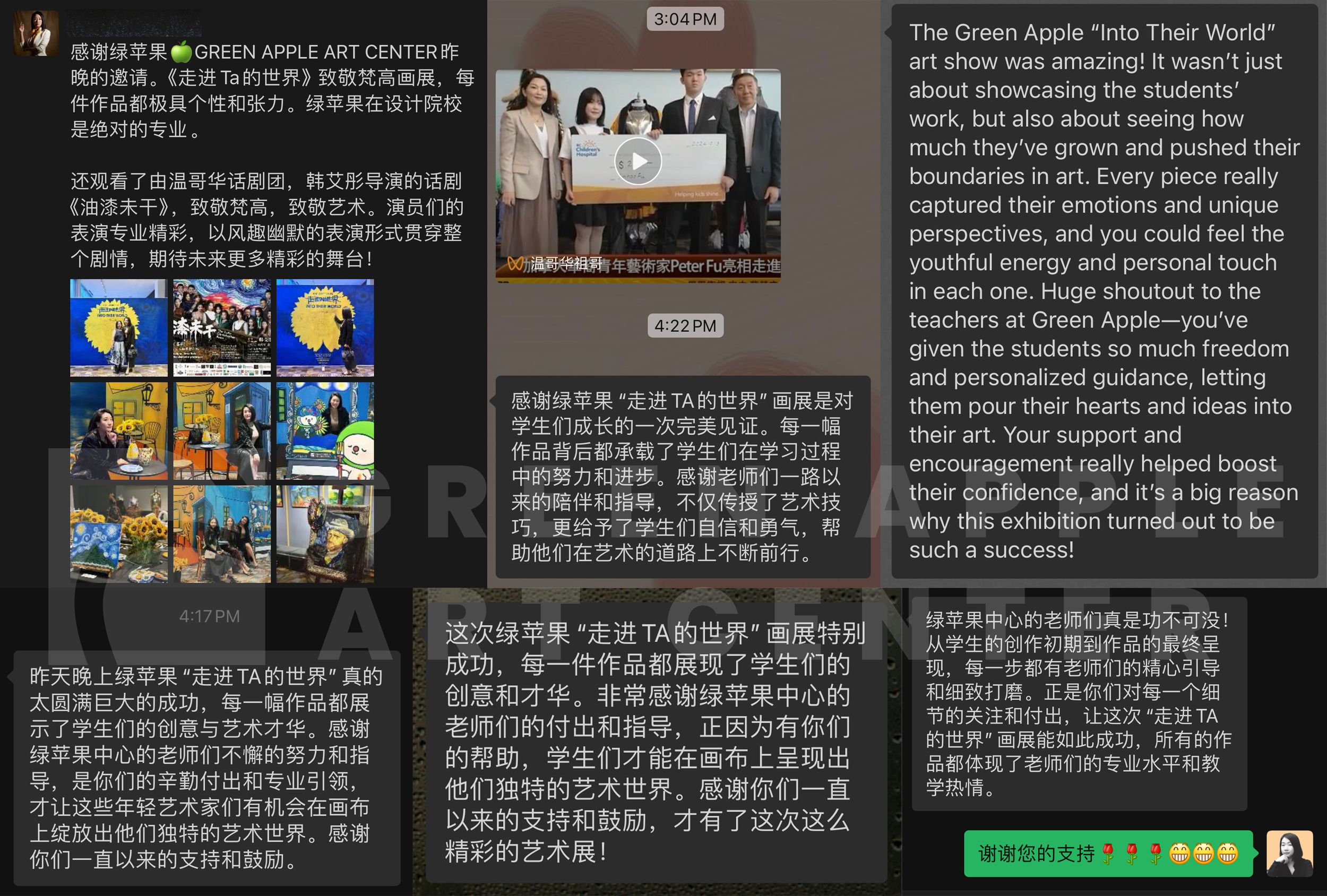 GAAC绿苹果艺术中心作为本次活动的协办方,很荣幸能与温哥华话剧团进行一次文化、绘画设计、和表演的艺术融合。《走进TA的世界》是本次跨界艺术展览的主题,我们的学生结合自己对梵高艺术的见解与对现代创意的设想,通过多种类的跨界融合,为观众呈现了一场视觉与心灵的盛宴。