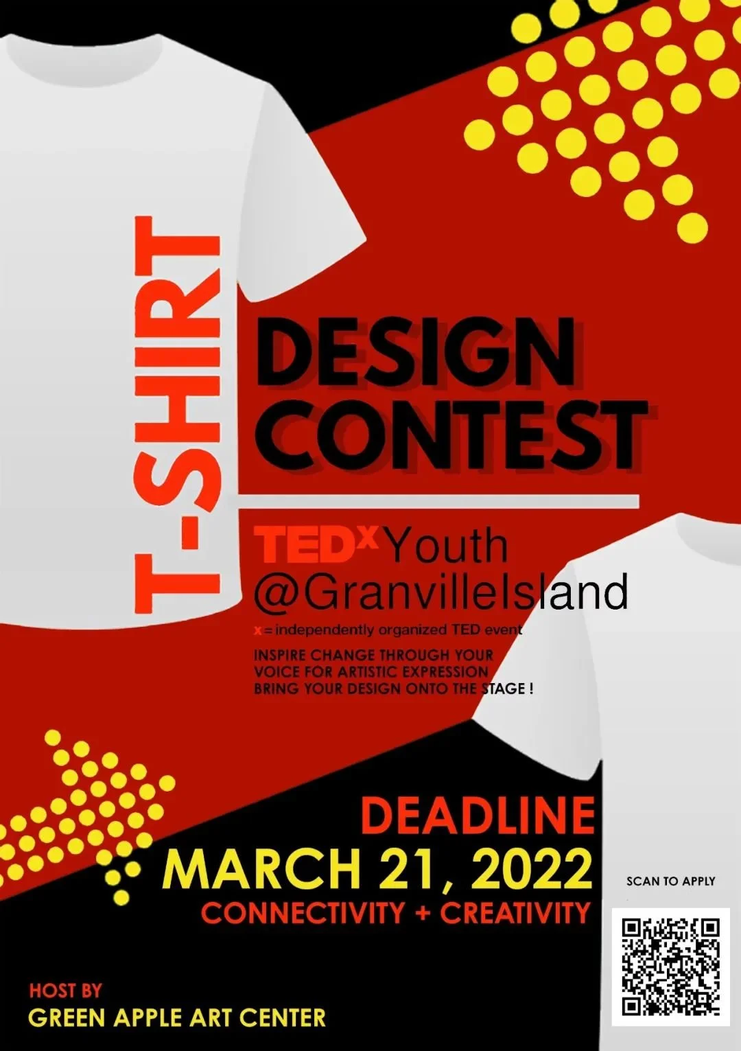 TEDxYouth@GranvilleIsland x 绿苹果艺术中心 GAAC 青少年T恤设计大赛正式拉开帷幕啦!