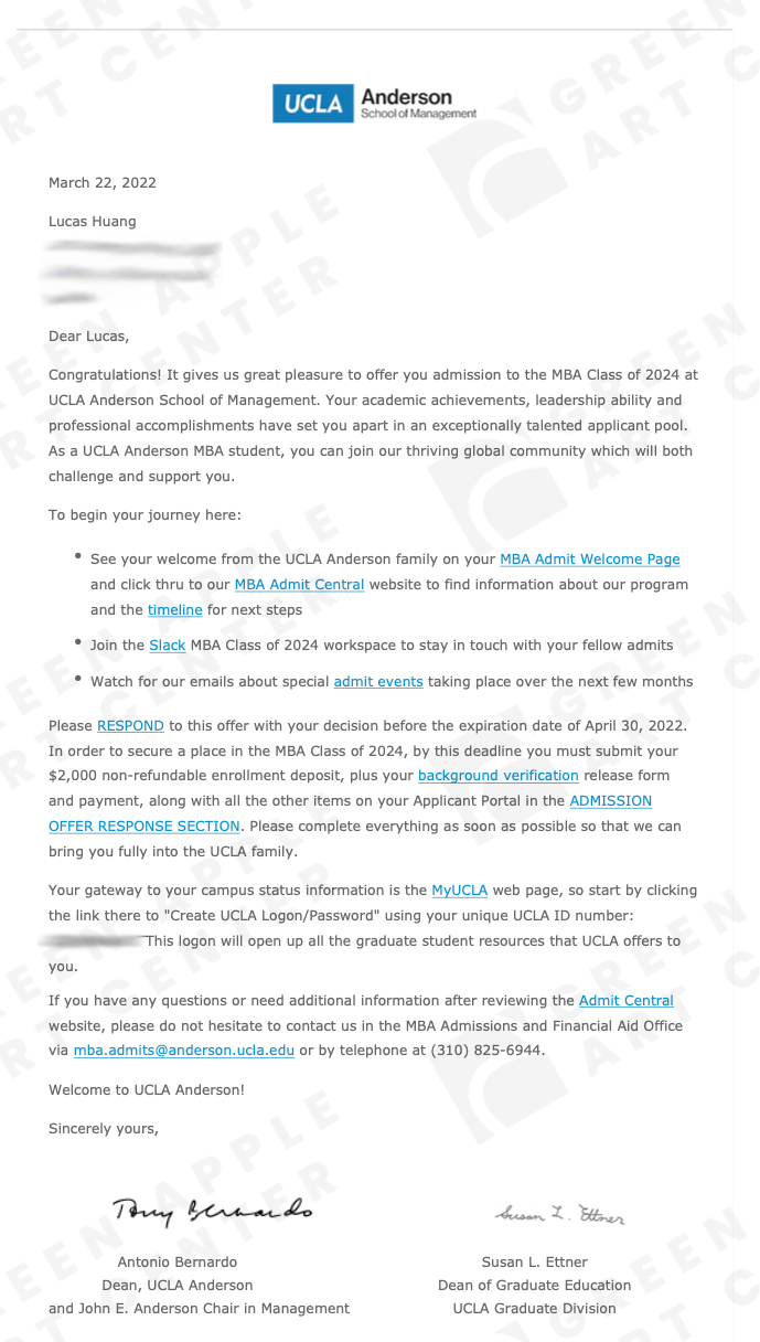 今年GAAC绿苹果艺术中心2022年秋冬系列纽约时装周设计师学员Lucas,于2022年2月13日上午完成了自己的纽约时装周首秀,同时收到了来自南加州大学商科的录取通知,并获得美金$60,000奖学金。在后续的一个月里,还在不断地收到来自各大名校的Offer,例如UCLA、UCBerkeley伯克利、密西根大学等。让我们一起恭喜他吧!
