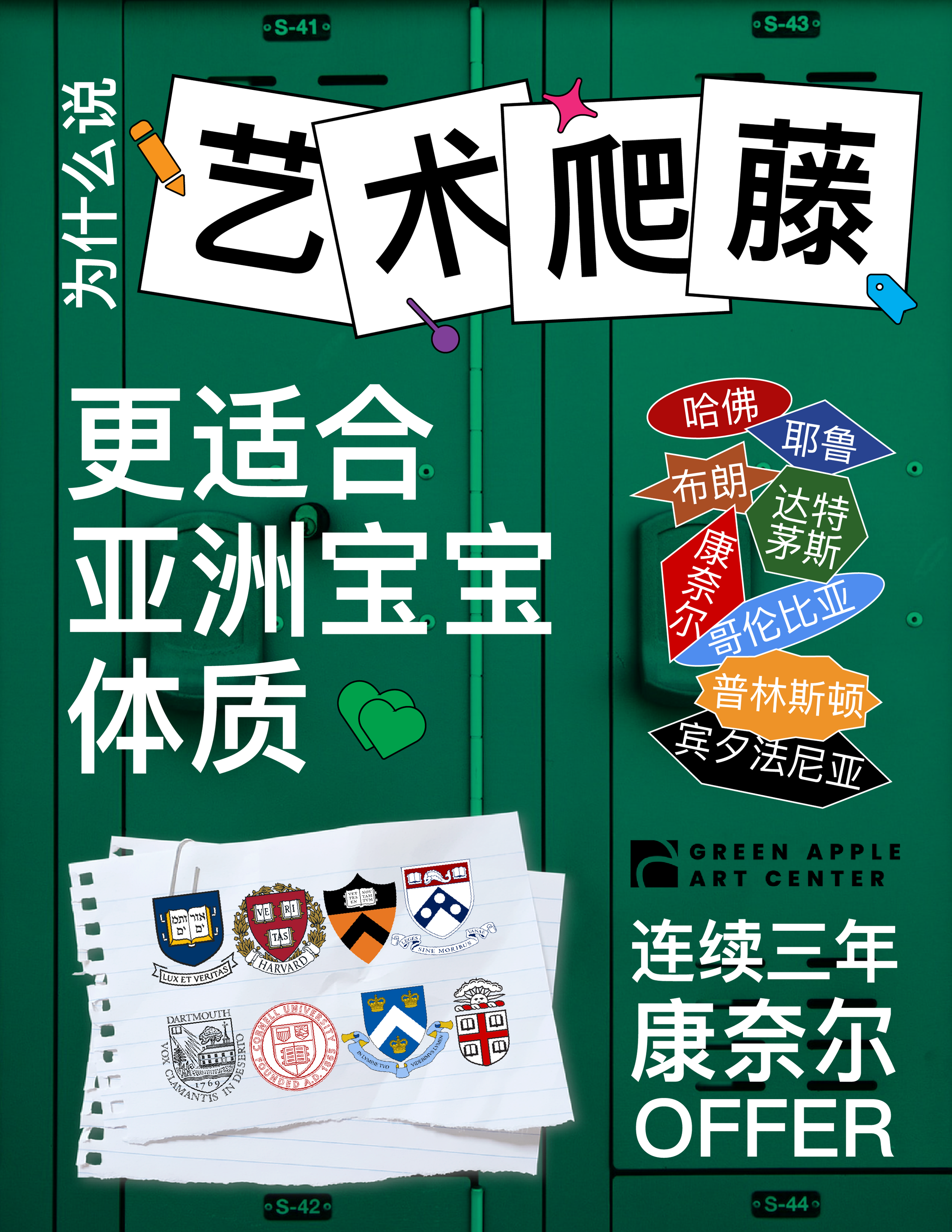 绿苹果艺术中心已经连续三年有学生被康奈尔大学录取!但我们的培养并不局限于绘画技巧和作品集,我们更重视学生在课外活动与项目执行上的成长。